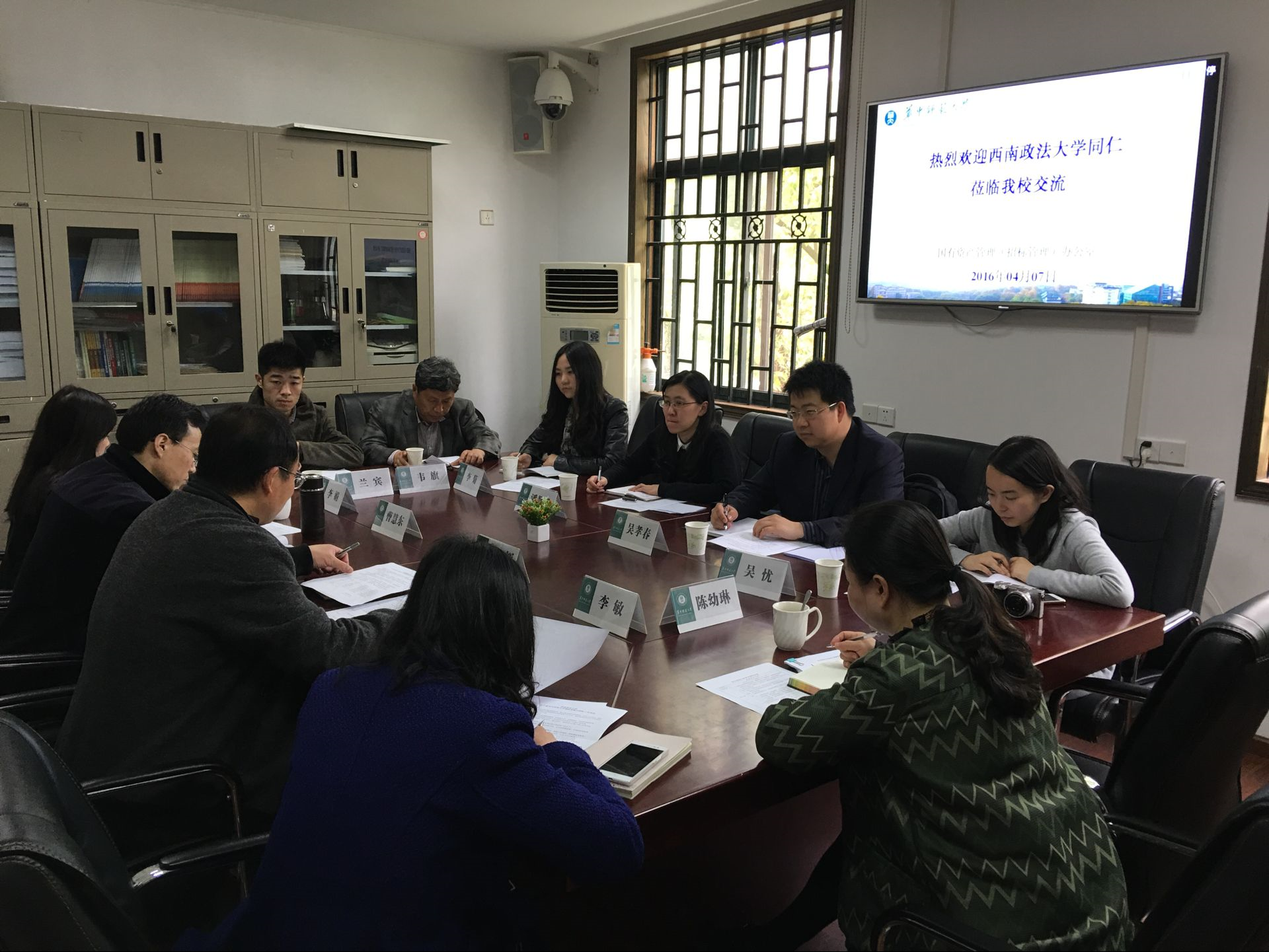 首先,揭主任对西南政法大学同行的到访表示热烈欢迎。接着,揭主任就我办的人员配备、运行机制、职能分工、制度建设等方面作了简要的介绍。并希望以此次交流为契机,不断加强两校间的交流与学习。