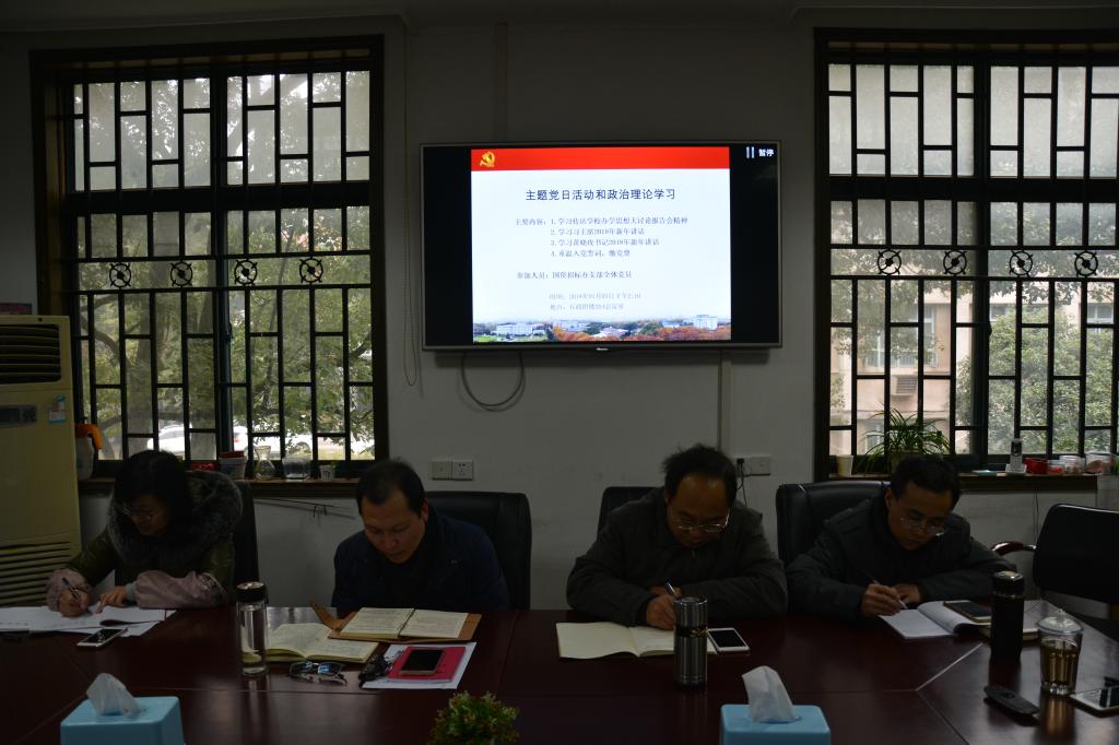 全体党员首先学习了“习近平主席2018年新年讲话”的重要内容。习总书记指出,在过去的一年里,“人民群众有了更多获得感、幸福感、安全感”,“我们伟大的发展成就由人民创造,应该由人民共享”。他说,“广大人民群众坚持爱国奉献,无怨无悔,让我感到千千万万普通人最伟大,同时让我感到幸福都是奋斗出来的”。他要求“我们要以庆祝改革开放40周年为契机,逢山开路,遇水架桥,将改革进行到底”。关于精准扶贫问题,习总书记指出,“中华民族几千年历史发展上将是首次整体消除绝对贫困现象”。习总书记句句话语温暖人心、鼓舞人心,让我们全体党员倍受鼓舞,决心在工作中心往一处想,力往一处使,坚决完成校党委和学校交给我们的各项任务。全体党员还回顾了习主席往年新年贺词的精典话语。周政华说,习近平主席新年讲话内容博大精深,意义深远,全体党员一定要深刻领会讲话精神,不忘初心继续前行。